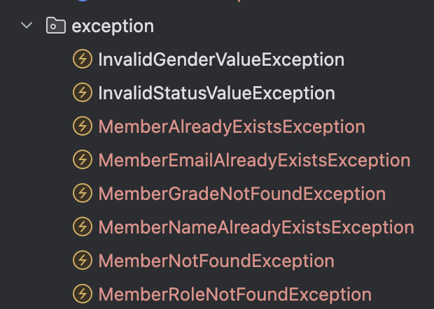 - DuplicateResourceException을 상속받은 도메인별(회원 이름) 중복 예외 클래스.