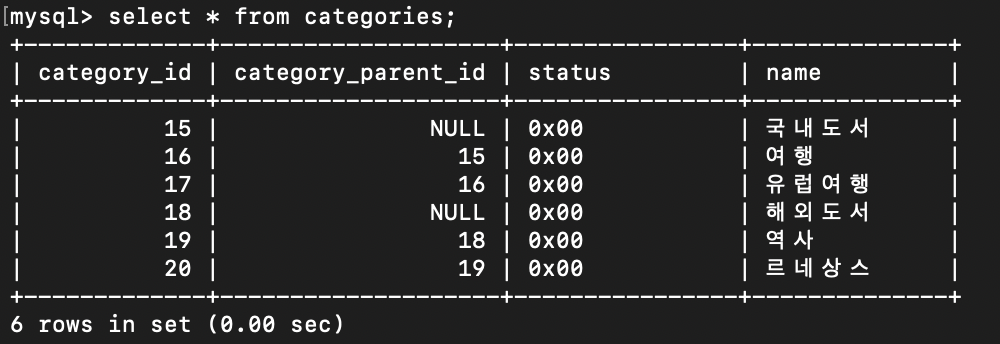 이로 인해 전체 카테고리 트리를 표현하거나, 자식 노드를 탐색하려면 매번 별도의 DB 쿼리가 필요함.