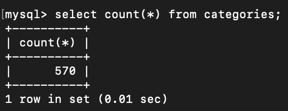 이후 요청은 Redis에 캐싱된 카테고리 데이터를 사용하므로 쿼리가 발생하지 않는다.