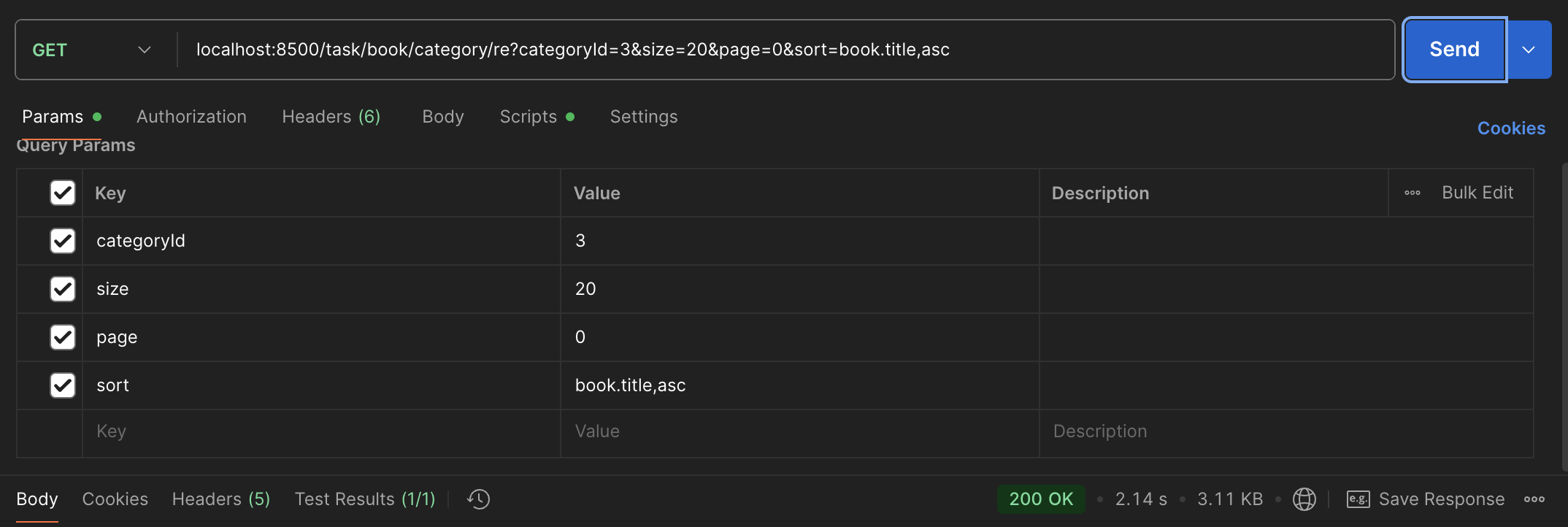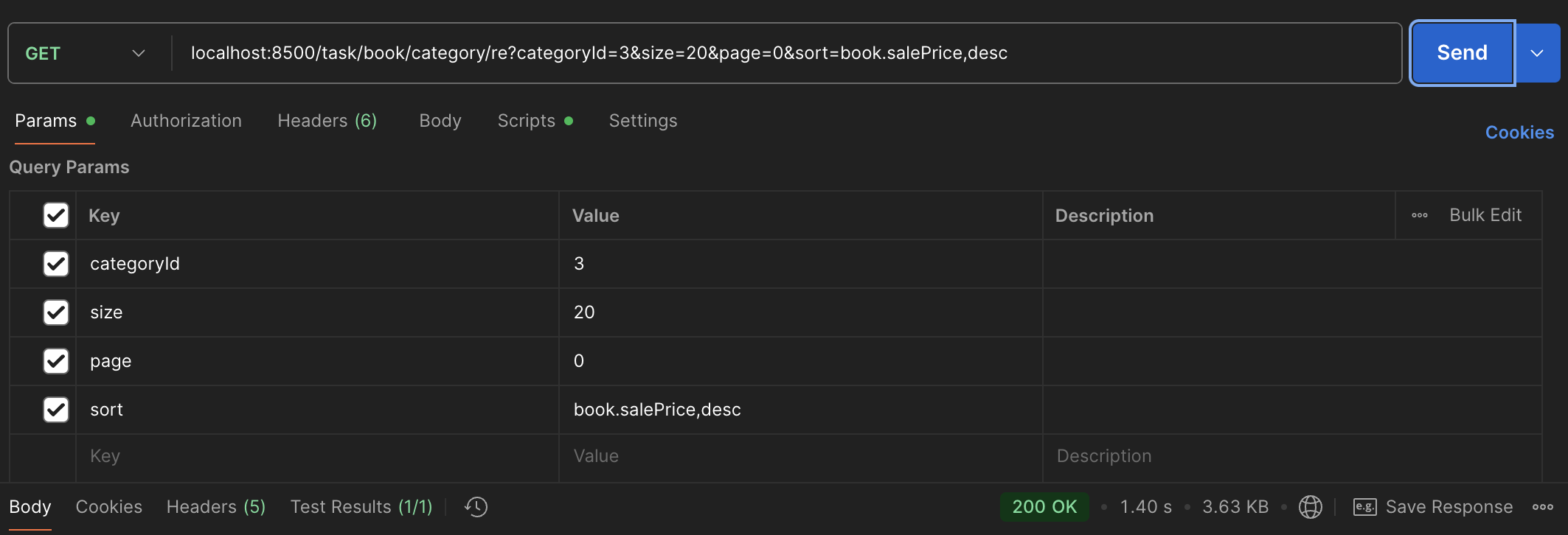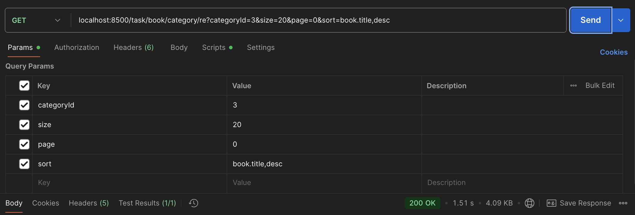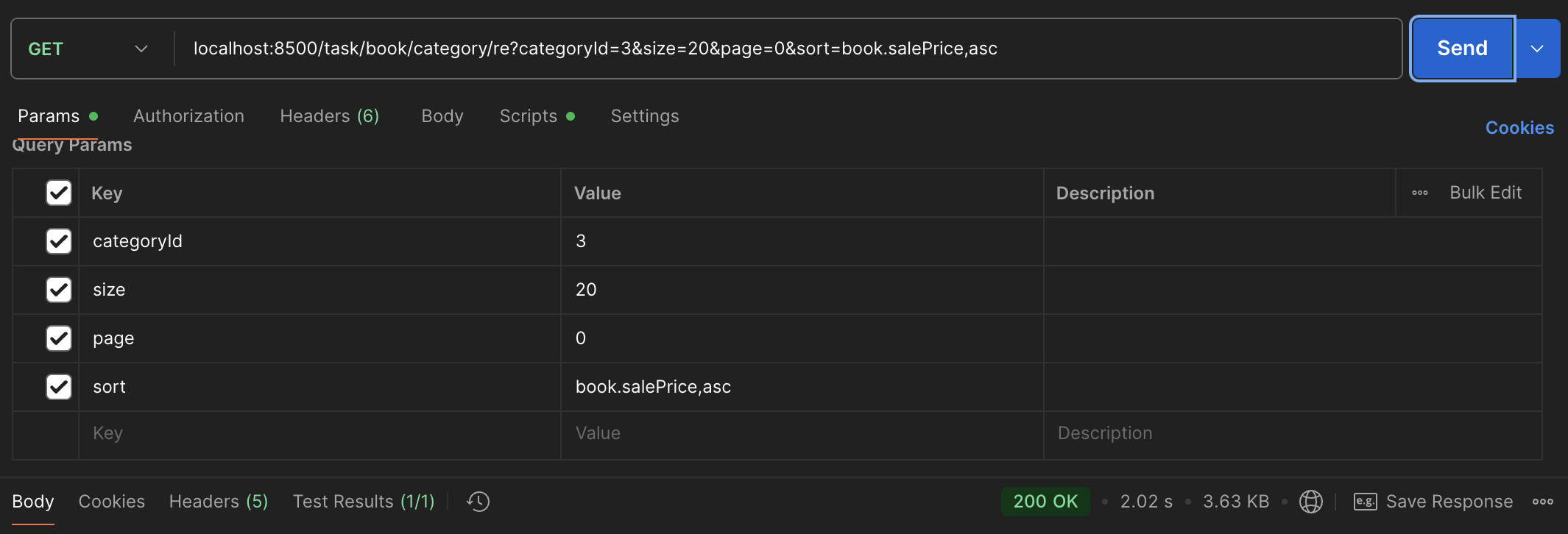 아래 JPQL처럼 BookCategory에서 categoryId로 book들을 모으고 → books와 조인 → 페이징 정렬을 한다.