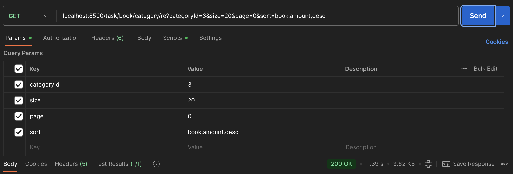 Page<BookCategory> findAllByCategory_CategoryIdOrderByBook_AmountDesc(int categoryId, Pageable pageable);