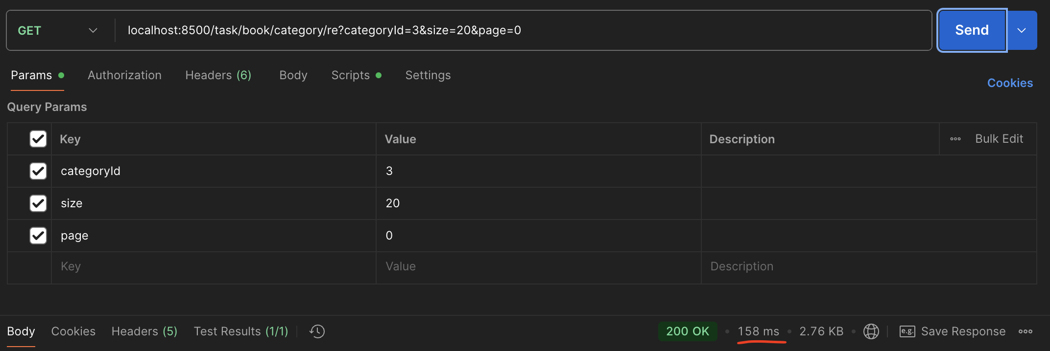반대로 정렬을 빼면, DB가 PK(book_id) 순서대로 바로 잘라 내서 0.158초 걸렸다.