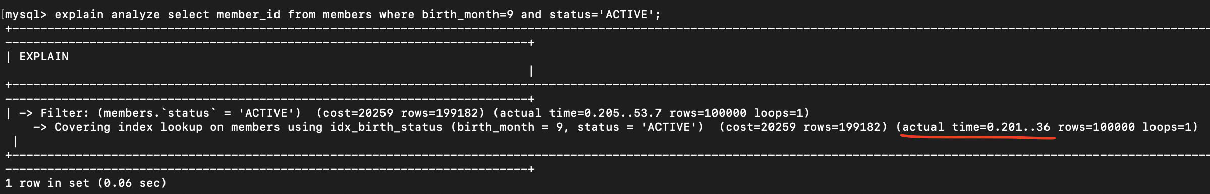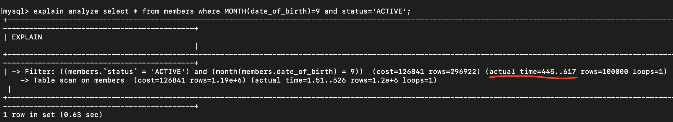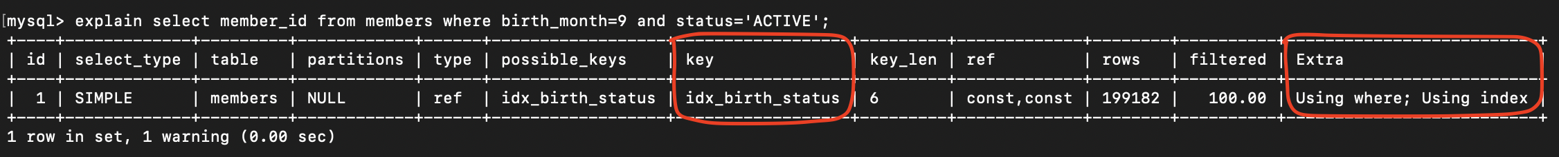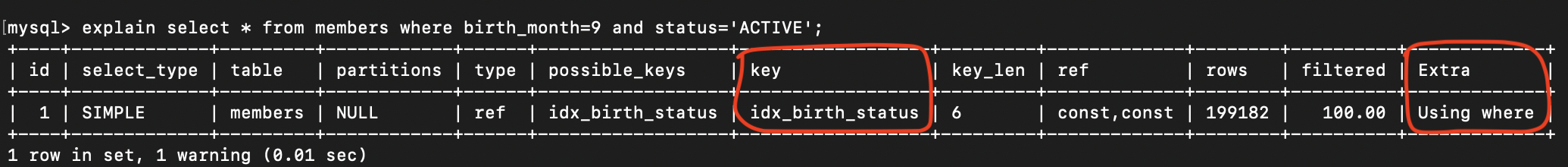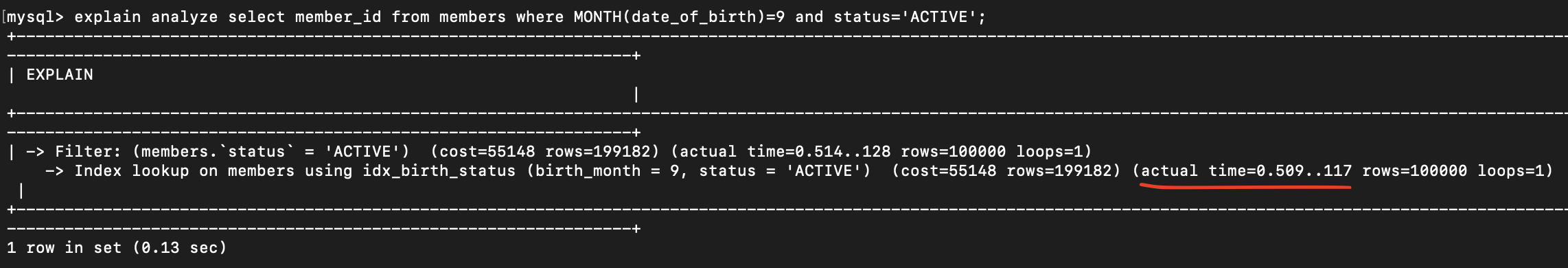 // birth_month 가상 컬럼을 쓰면 인덱스를 잘 탑니다.