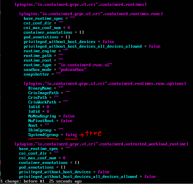 sudo sed -ri 's/SystemdCgroup\s*=\s*false/SystemdCgroup = true/' /etc/containerd/config.toml