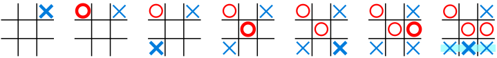 아래 예시는 먼저 놓은 X가 이기는 경우이다.
