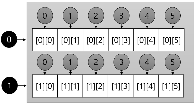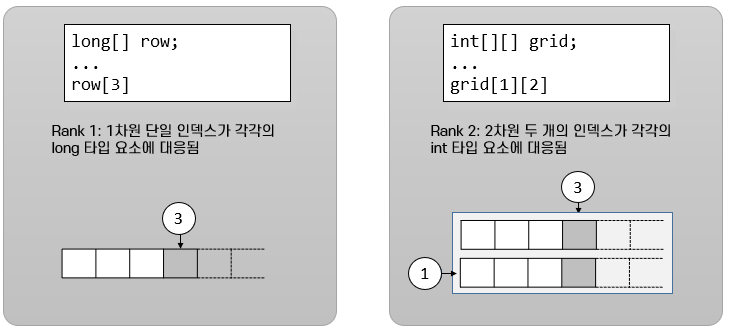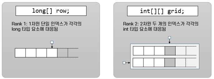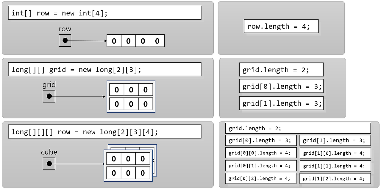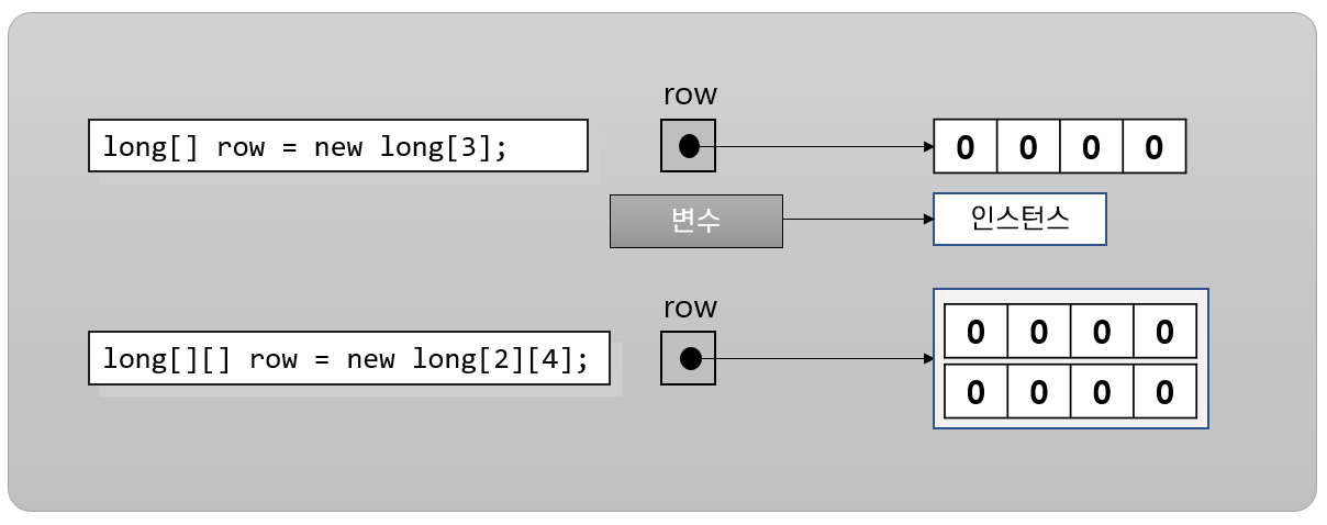 - Java의 다차원 배열은 배열안에 다른 배열이 포함되어 있는 형태.