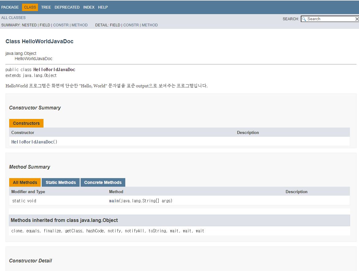 $ javadoc -d [출력 디렉토리] [대상 파일] // javadoc -d 20240820 hello.java