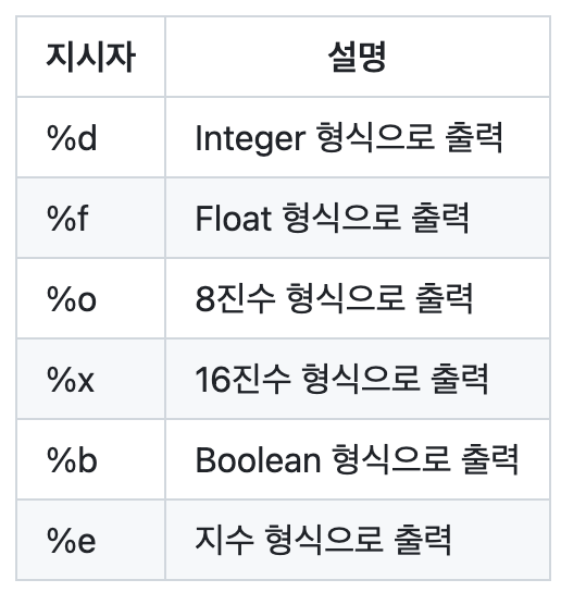 System.out.printf("%d 더하기 %d는 %d", 2, 3, 5); // 출력: 2 더하기 3은 5