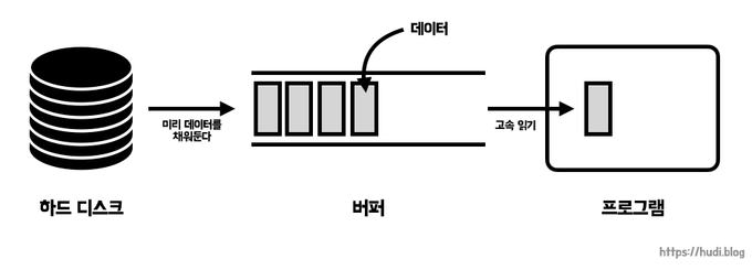 - 바이트 단위로 파일을 읽을 때 속도를 향상시키기 위해 사용.