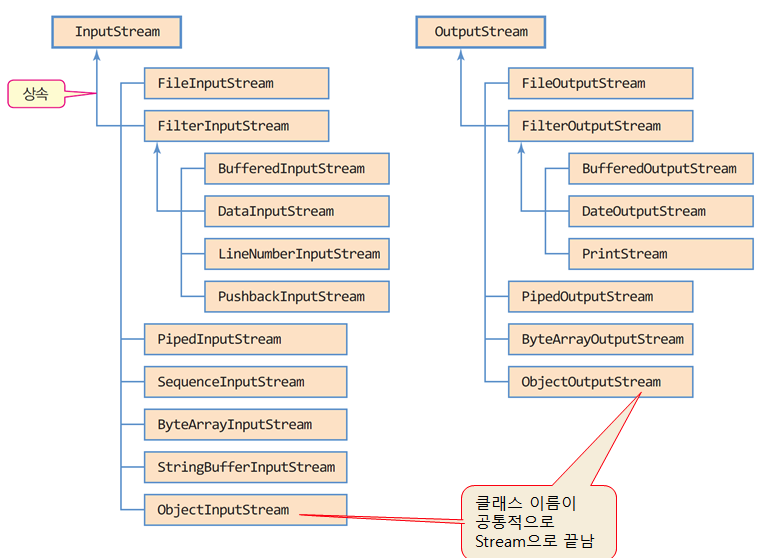- 하위 클래스는 __InputStream 의 이름을 가진다. ex) FileInputStream