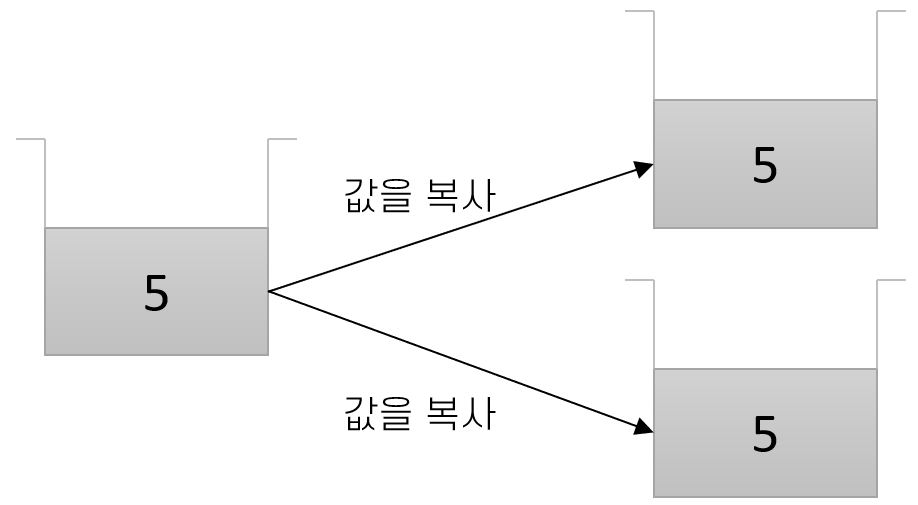- 값 타입 (Value Type): 값 타입 변수는 스택(Stack) 영역에 저장되며, 해당 데이터가 직접 포함된다(데이터가 copy된다).