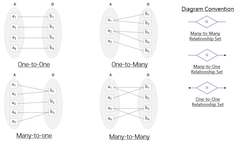 - 관계 집합 (Relationship Set): 같은 유형의 관계들의 집합.